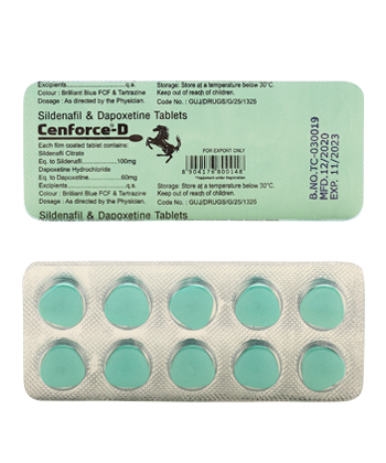 - De gebruikelijke dosis van Cenforce D is 1 tablet van 100 mg sildenafil en 60 mg dapoxetine.
